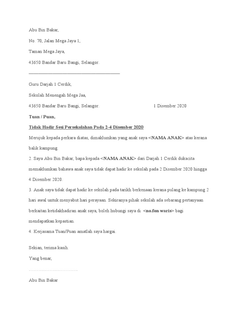 Contoh Surat Cuti Sekolah Kerana Balik Kampung Contoh Surat Rasmi Tidak Hadir Ke Sekolah Terkini Blog Surat Rasmi Permohonan Cuti Sekolah Ini Penting Dalam Memastikan Irlutacsan